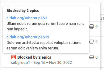 If an epic is blocked by another epic, an icon appears next to its title to indicate its blocked status.