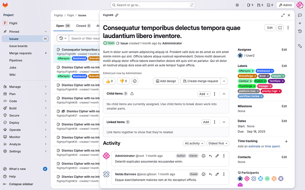You could already open work items in a drawer. GitLab now uses a details panel that fits in better with the context of your work.