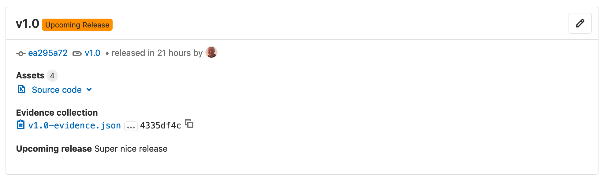 Create a release to package your project at critical milestones. Releases combine code, binaries, documentation, and release notes into a complete snapshot of your project. When a release is created, GitLab automatically tags your code, archives a snapshot, and generates audit-ready evidence. This creates a permanent record that’s perfect for compliance requirements and can give your users confidence in your development process.