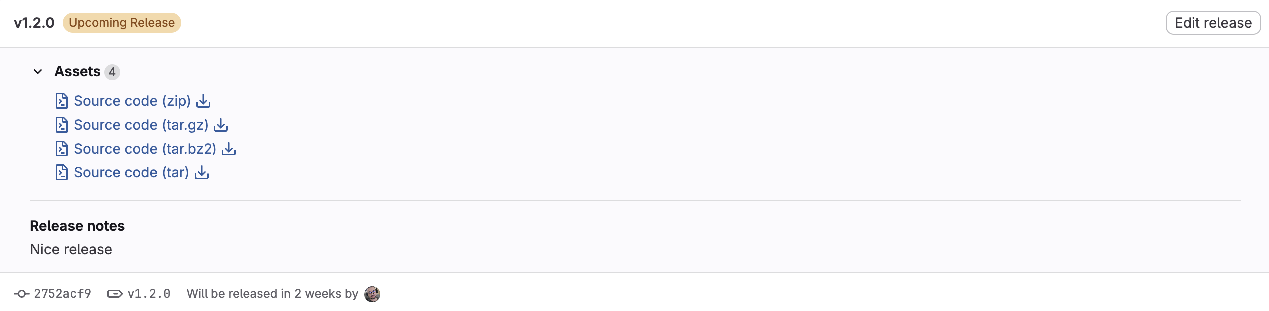 Create a release to package your project at critical milestones. Releases combine code, binaries, documentation, and release notes into a complete snapshot of your project. When a release is created, GitLab automatically tags your code, archives a snapshot, and generates audit-ready evidence. This creates a permanent record that’s perfect for compliance requirements and can give your users confidence in your development process.